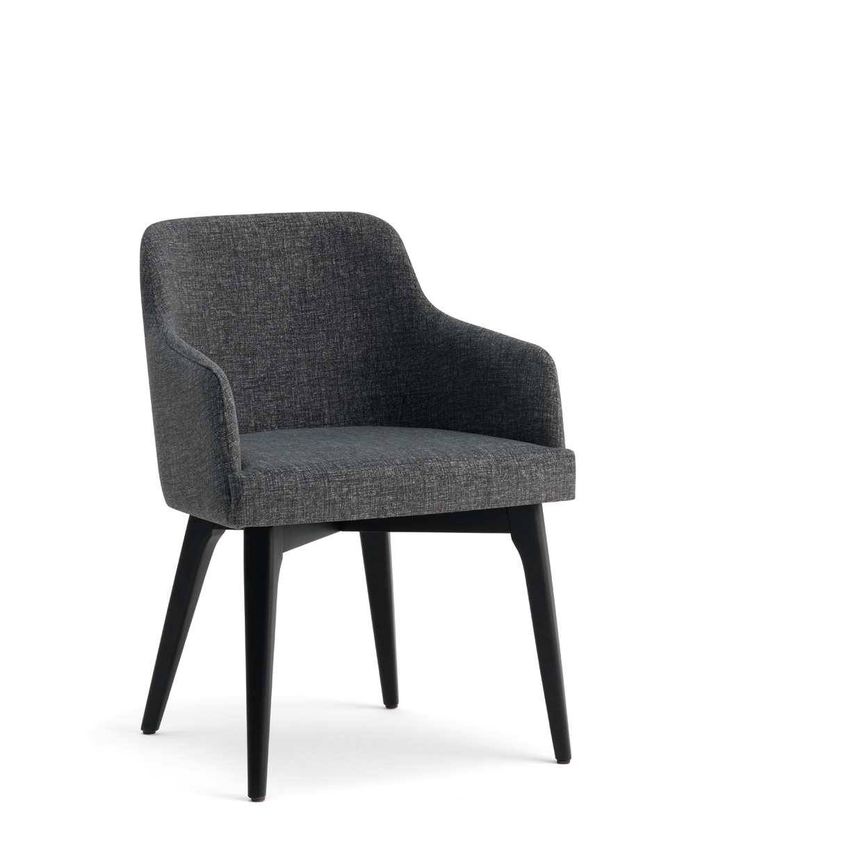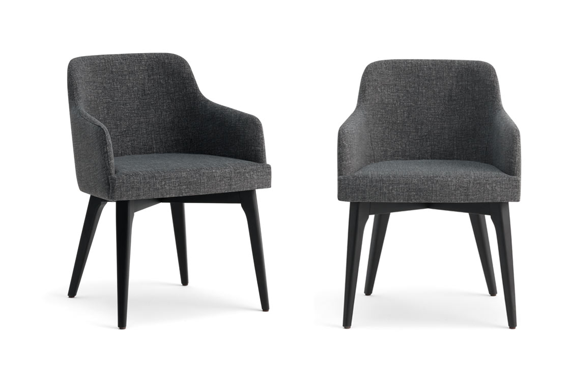 ASTON je oblazinjen moderen fotelj ki ima črno obarvane lesene noge. Zgornji del fotelja je v tekstilu različnih barv.