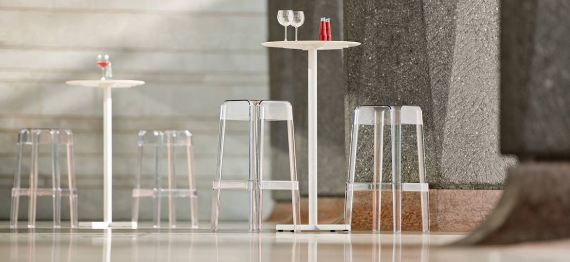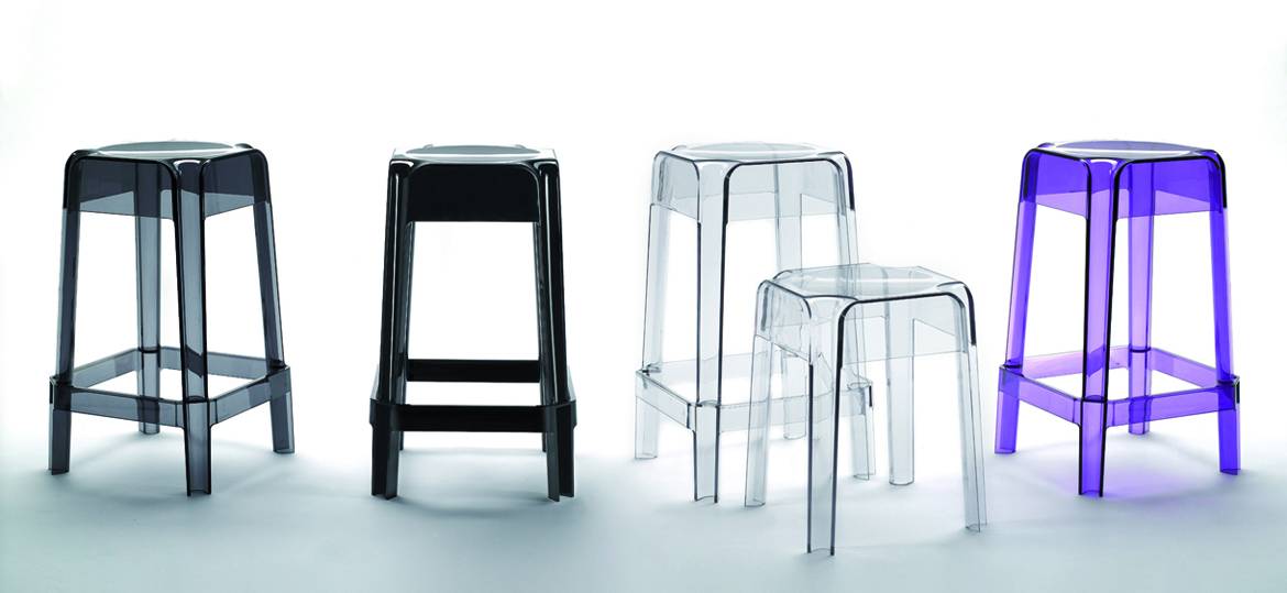 Barski stoli RUBIK so izdelani iz polikarbonatne plastike, ki ima optimalne fizične lastnosti, je odporna na udarce in nezlomljiva. Primerni so za uporabo v zunanjih prostorih. Barski stoli RUBIK so lahko oblazinjeni s poliuretansko peno. Na voljo so v številnih barvnih odtenkih; transparentnih in netransparentnih.