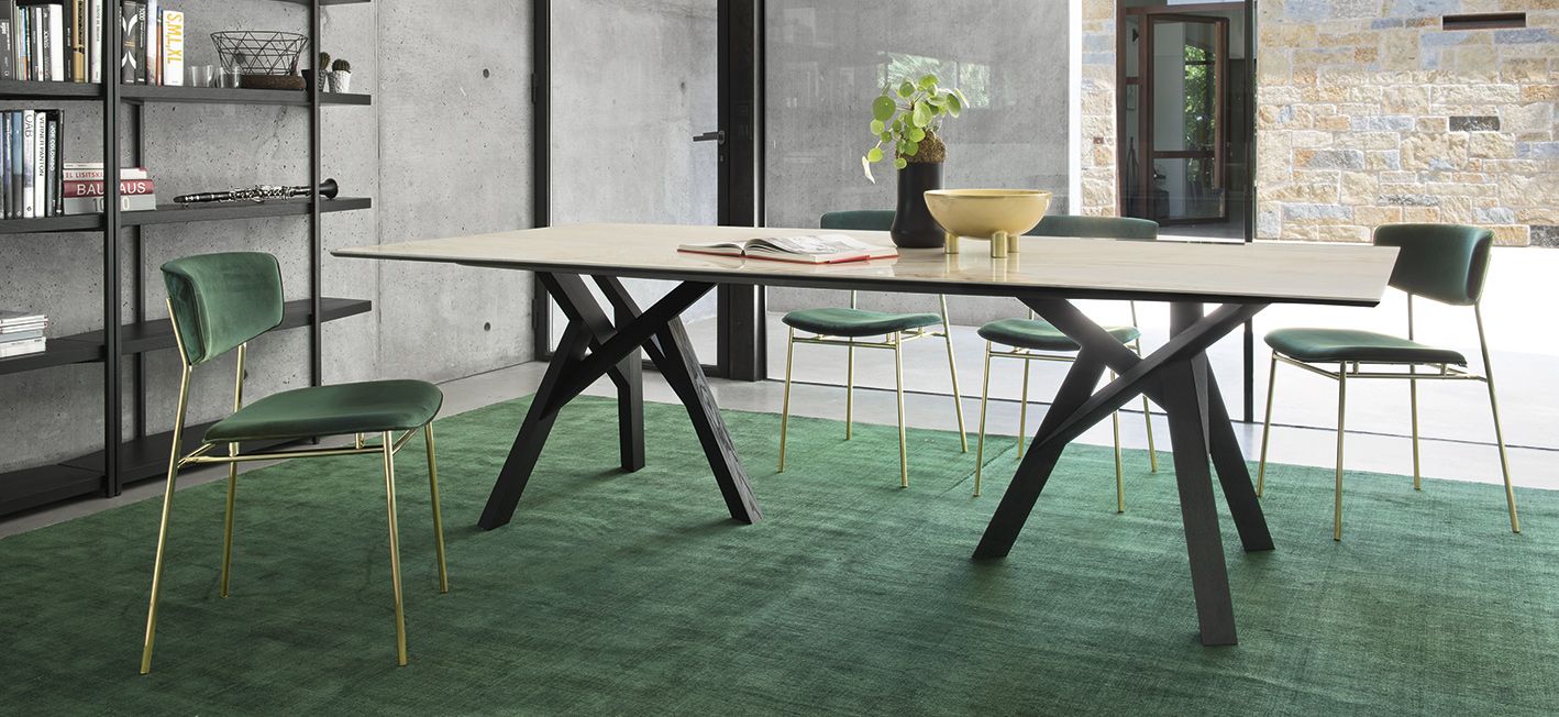 Kovinski stol , oblazinjen s tekstilom ali usnjem. Lahkotnost in eleganca stola daje starinski pridih v vašo jedilnico.