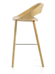 Majhen barski stol z naravnim ali pobarvanim podnožje iz jesenovega lesa ali kromirano podnožje. Oblazinjen s tekstilom ali usnjem.