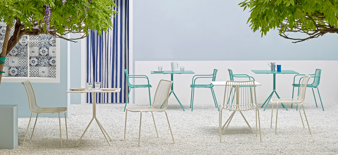 Stoli Nolita so v celoti izdelani iz jekla in so posebej oblikovani za uporabo na prostem.