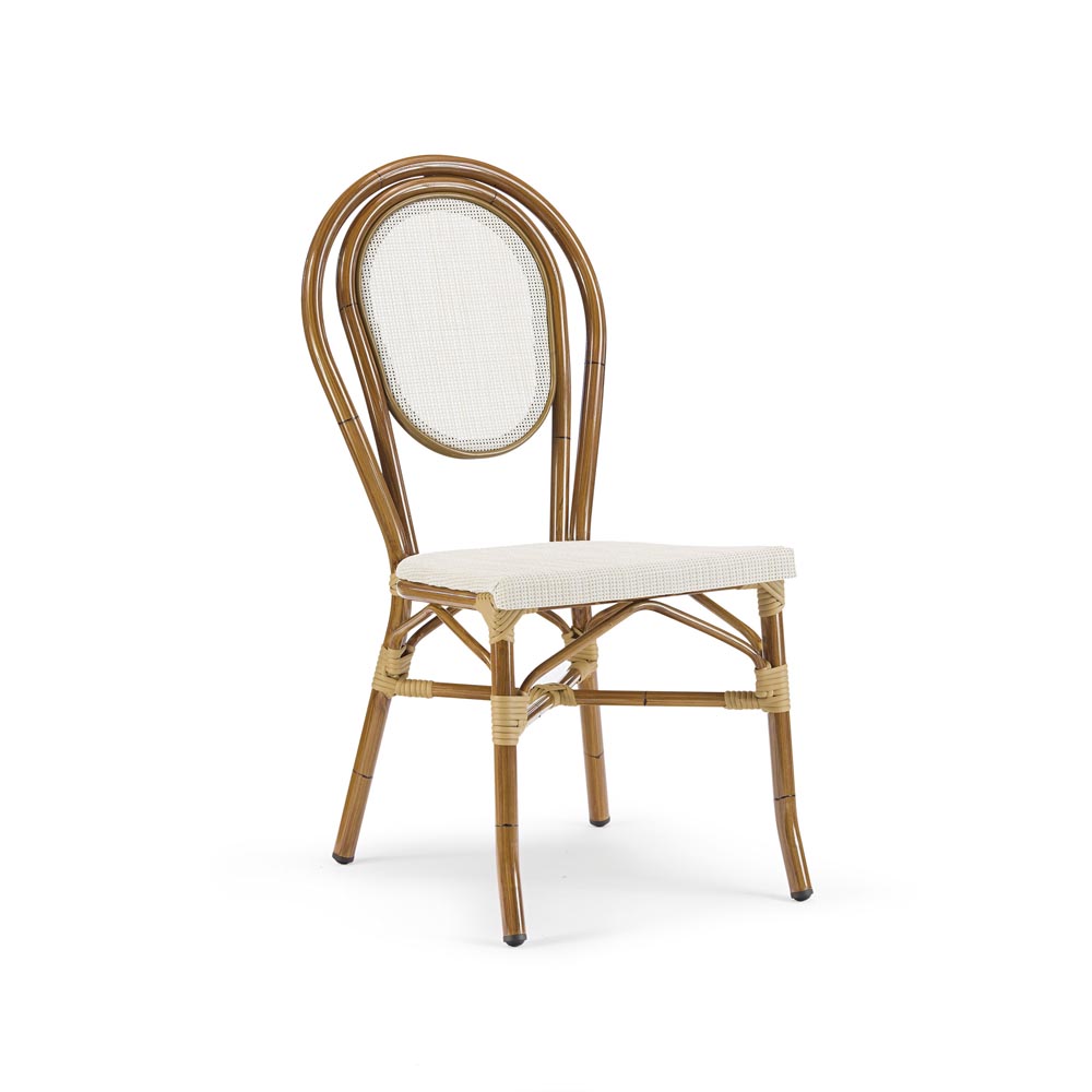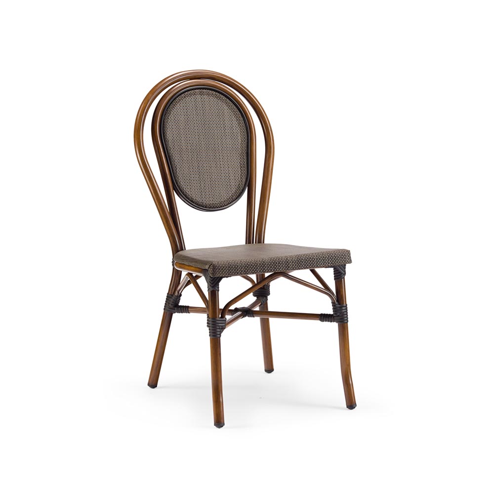 Stol iz aluminijastega okvirja, prekritega s tekstilom z lakiranim “bambusovim videzom”