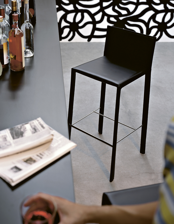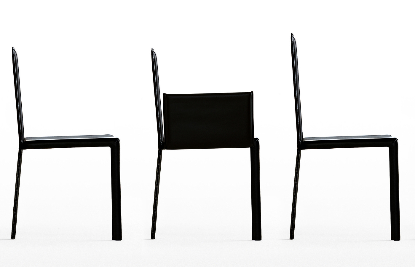 Stol Slim odlikujejo njegova usnjena oblazinjenost, z izjemno izdelanimi podrobnostmi. Na voljo v različnih barvah, in več različicah: z naslonjali za roke ali brez njega, ali z visokim hrbtom za tiste, ki želijo visoko stopnjo udobja.