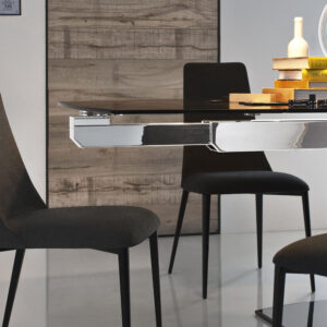 Jedilni stoli bodo v vaš jedilnico vnesli moderen val elegance. Ti izjemno udobni oblazinjeni stoli s kvalitetnim mehkim sediščem, ki je napolnjeno s poliuretansko peno, dolgo obdrži svojo prvotno obliko in konsistenco. Sedišče je oblečeno v dvojslojni material, spodnji sloj je usnjen, zgornji pa semiš iz mikrovlaken. Lesene noge iz bukovine se izvrstno prilegajo lesenim mizam iz bukovine. Na voljo je vrsto barvnih odtenkov materiala in tri vrste barvnih odtenkov lesa.