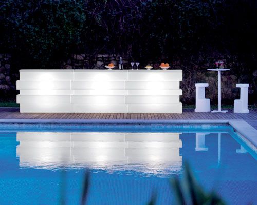 Pedrali v liniji TETRIS ponuja tudi zunanje pohištvo oz. vrtno pohištvo za dogodke. Točilni pult TETRIS je idealen za zunanji bar ob bazenu, na plaži ali za “happy hour” na vrtu, kot tudi za notranje prostore. Točilni pulti so namenjeni ustvarjanju neskončne kombinacije, v notranjosti pulta so na voljo tudi police, lahko je opremljen z notranjim sistemom razsvetljave in delovno površino iz nerjavečega jekla, ki je odporena za čiščenje.
