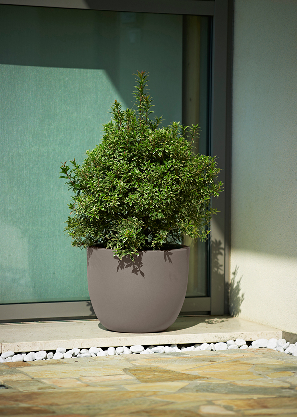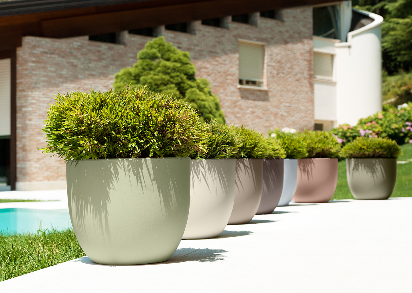 Okrogel lonec za rože ETRIA KHILIA je dobavljiv z enojno ali dvojno steno.