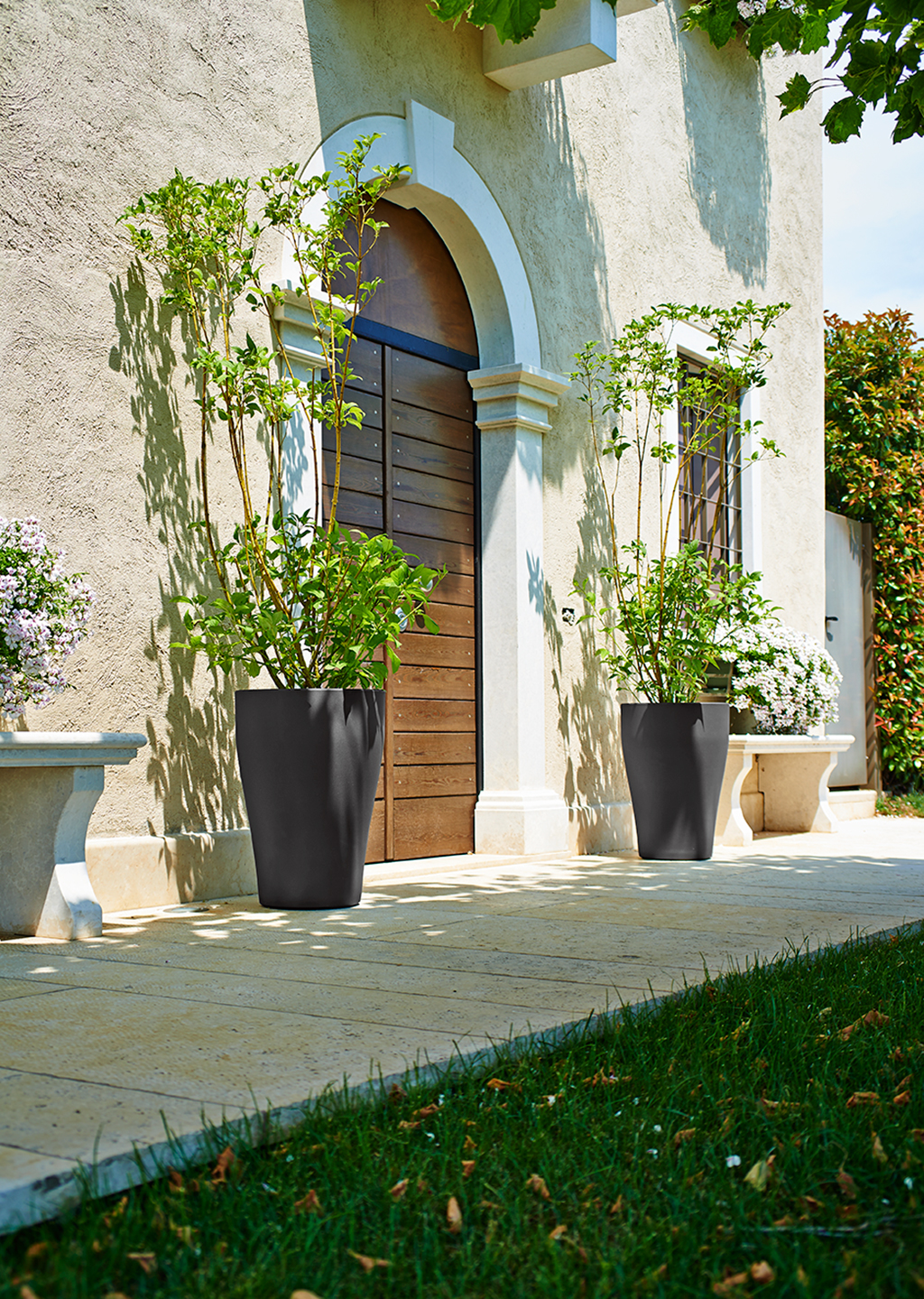 Okrogel lonec za rože TULUM KHILIA je v mat različici.