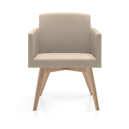 Elegantno oblazinjen stol, katerega okvir je v celoti oblikovan iz poliuretana, nogice pa so lahko lesene ali kovinske. Možnost kombiniranja s tkaninami za slavnostne priložnosti.