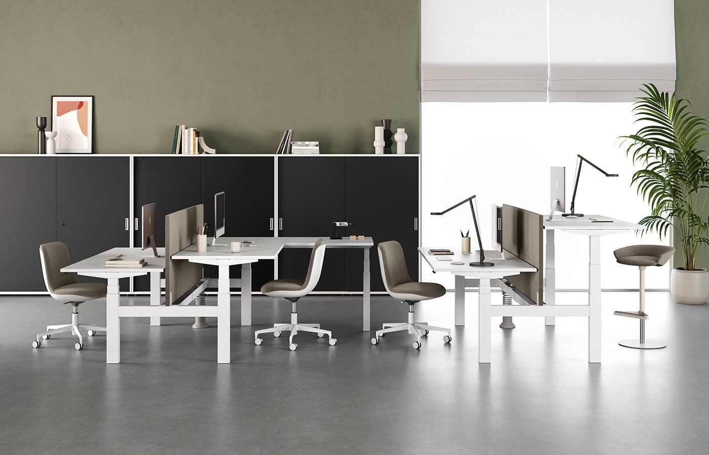 Estetske in tehnološke raziskave, ki presegajo tradicionalne trende in se osredotočajo na zelo inovativne rešitve, ki dajejo nove impulze in možnosti ustvarjalnosti. Enojne mize ali klopi z električno nastavljivo kovinsko konstrukcijo po višini so lahko opremljene z dodatki in ustrezajo veljavnim predpisom.